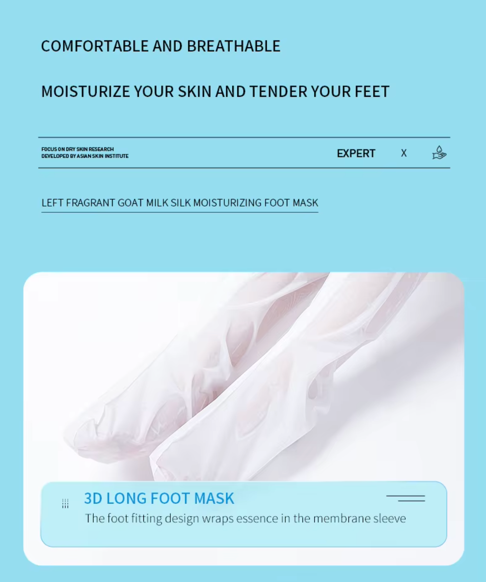 The Goat Milk Exfoliating Foot Mask Socks provide an easy and effective solution for removing dead skin, calluses, and rough heels at home. Enriched with Goat Milk, Vitamin C, Hyaluronic Acid, and Centella, this organic foot peeling mask deeply nourishes, brightens, and moisturizes your feet. The gentle yet powerful exfoliating formula works over a few days to naturally shed dead skin, revealing soft, baby-smooth feet.